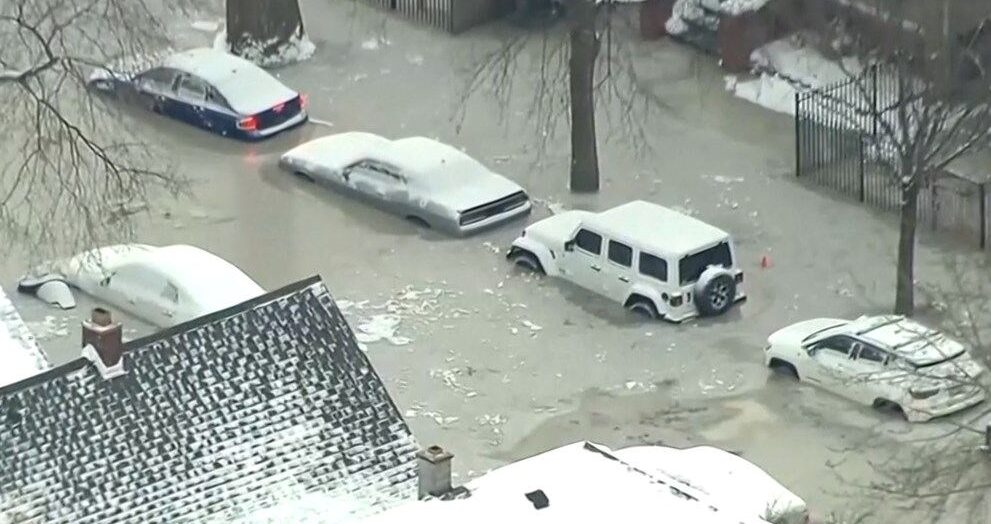 Century-old water main burst, vehicles stuck in frozen water